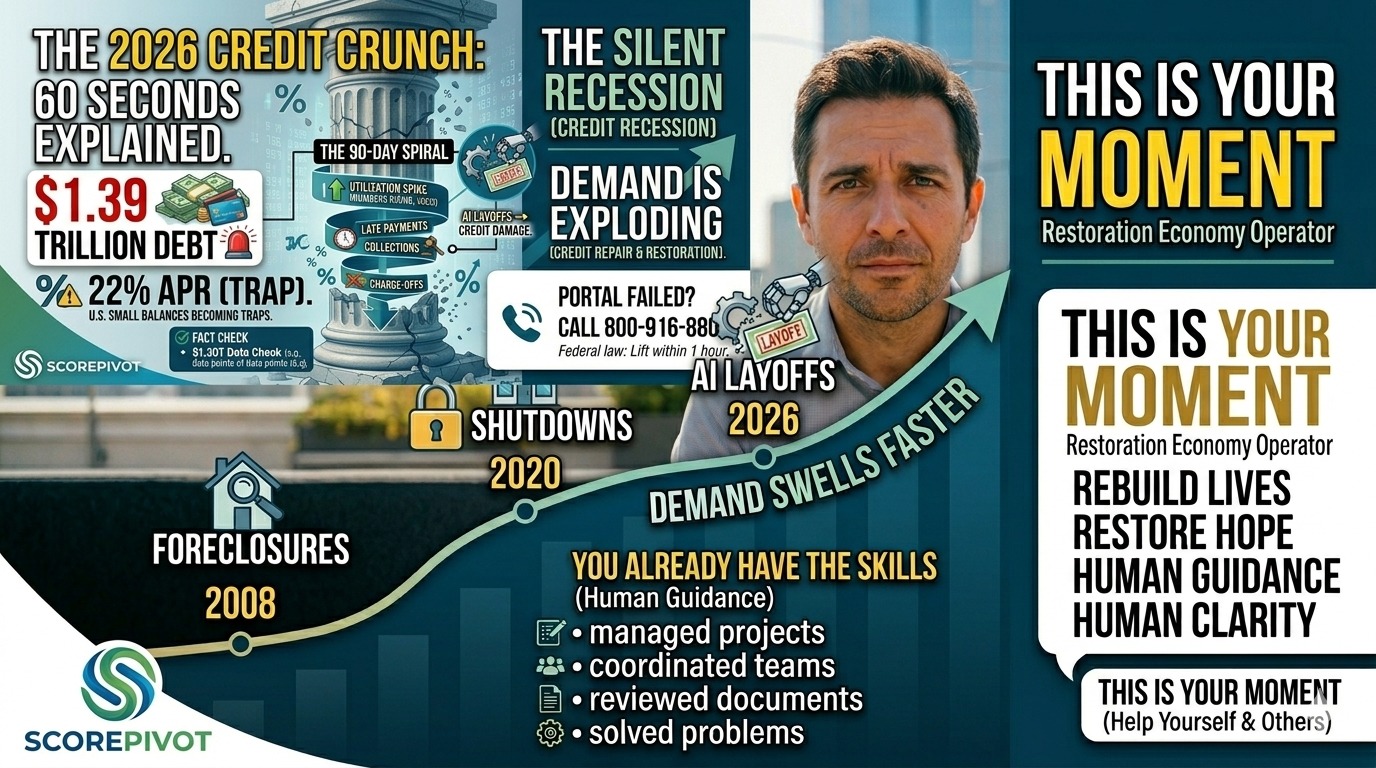 This AI Layoffs guide is one part of the full 2026 credit-damage prevention and business-building system. Continue strengthening your financial strategy and positioning for the Restoration Economy.